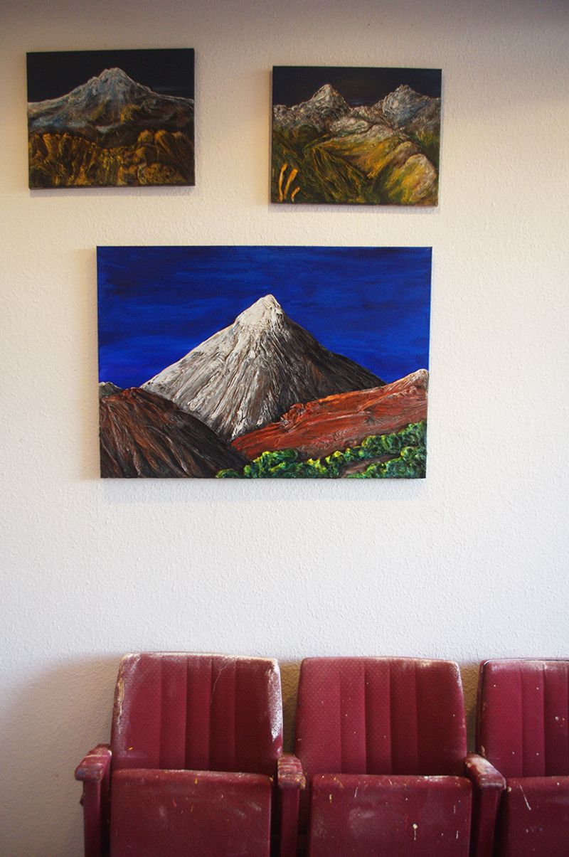 Diese Ausstellung entfürht den Betrachter zu lateinamerikanischen Bergen – zu typischen Bergspitzen und Strukturen – und den Menschen, eingebettet in ihre Lebensumgebung. Auf ihren Reisen traf Regina Frimel auf Mapuche Indianer, lebte mit ihnen, und bringt diese Betrachtungen in ihre Malerei und Skulpturen ein.